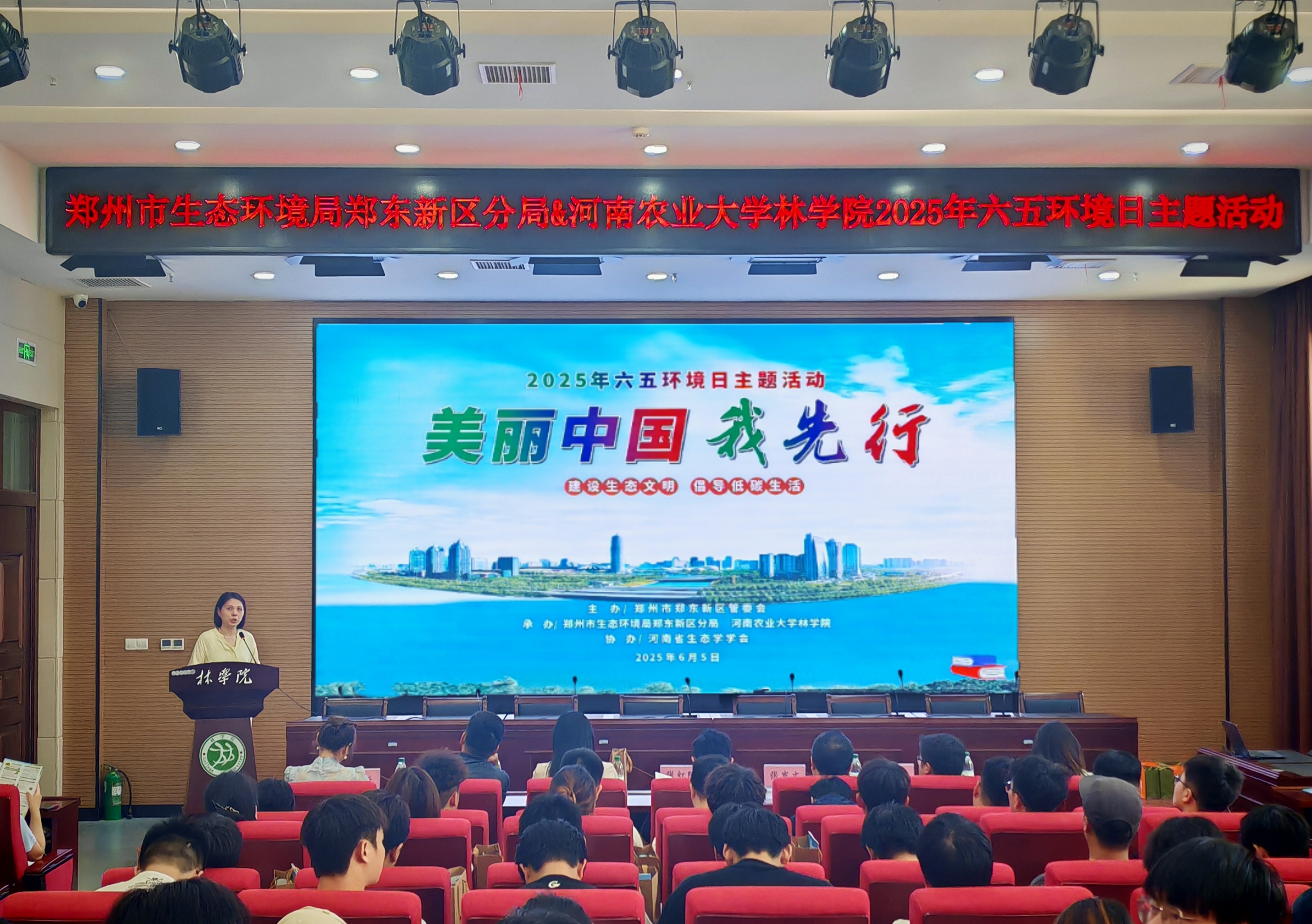 本网讯(通讯员 马蒙恩)6月5日,由郑州市东区管委会主办,我院与郑州市生态环境局郑东新区分局承办的“美丽中国我先行”——2025年六五环境日主题活动在龙子湖校区力行楼举行。郑州市生态环境局郑东新区分局局长张红阳、我院党委书记化青报、院党委副书记王娟及学院师生代表参加本次活动。