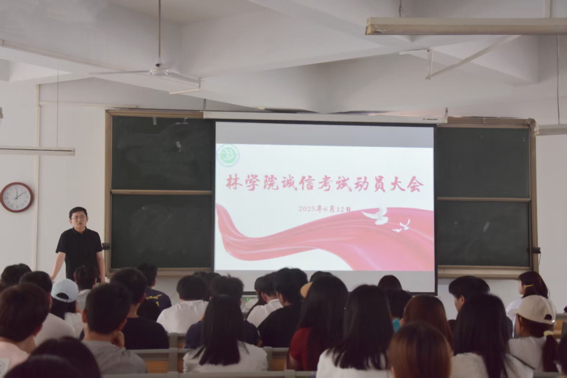 会上,张琛宣读《河南农业大学关于进一步加强考试管理的若干意见》,严肃考风考纪,强调诚信考试的重要性,并以近期发生的真实案例提醒同学们严谨自律,诚信考试,杜绝一切作弊行为。接着,2024级环境工程二班赵壬浩作为学生代表宣读《林学院诚信考试倡议书》,号召同学们严格遵守考试规则,遵循考场纪律,诚实守信,认真备考。最后,全体学生代表起立宣誓,郑重承诺将以实际行动践行诚信准则,恪守考场纪律,自觉维护考场公平正义,展现出学院学子积极向上的精神风貌。
