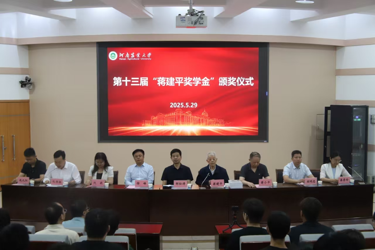 本网讯(通讯员 马蒙恩)5月29日上午,第十三届“蒋建平奖学金”颁奖仪式在文化路校区300人报告厅隆重举办。校党委副书记、工会主席邹松涛、原河南农业大学校长蒋建平、校相关职能部门负责人、林学院、风景园林与艺术学院和园艺学院师生代表以及历届“蒋建平奖学金”获得者代表参加。仪式由我院党委书记化青报主持。