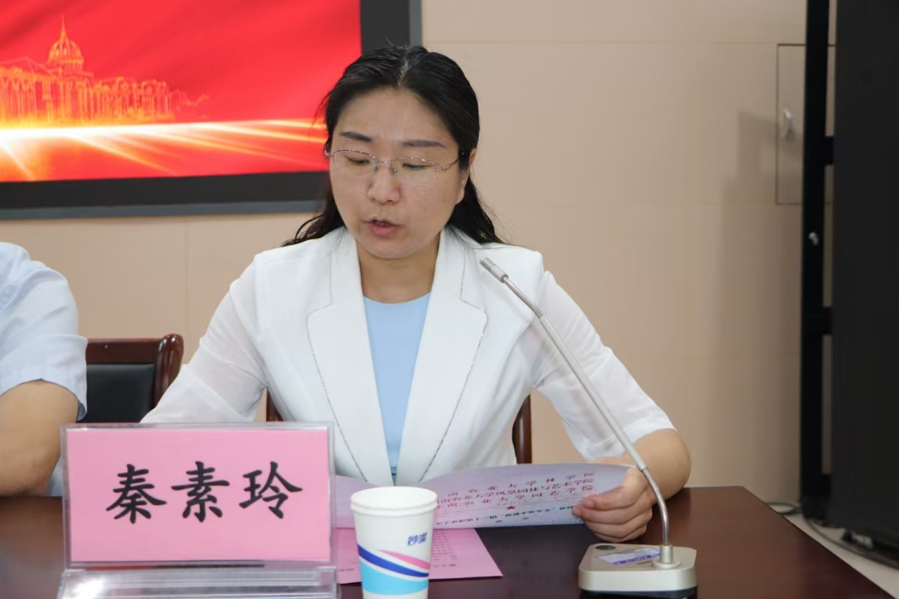 园艺学院党委书记秦素玲宣读《河南农业大学林学院、风景园林与艺术学院、园艺学院关于表彰第十三届“蒋建平奖学金”获得者的决定》。