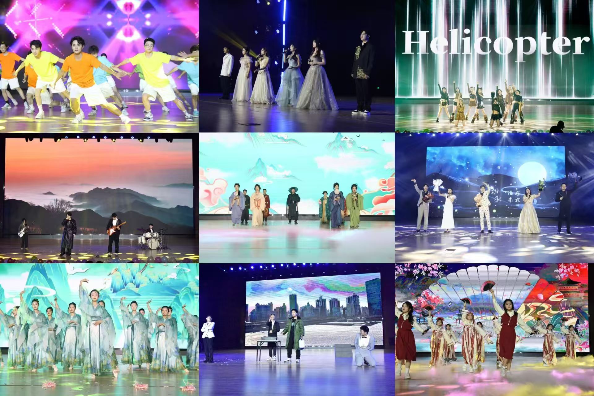 随后,演出在开场舞《我们一起闯》中拉开序幕,舞者们活力四射点燃全场。本次晚会共分为“森之忆”、“林之韵”、“新之耀”三个篇章。歌曲《归途有风》、《飘向北方》、《你的模样》、《Forever Young》蕴含着对远方的渴望和对理想的追求,激励大家在新的一年里勇敢地追寻自己的目标,无畏前行;现代舞《Helicopter》以充满力量与节奏感的舞姿,展现青春的活力与激情;歌舞合唱《寄明月》、走秀节目《古韵今风》,为观众带来古风典雅与时尚潮流相结合的视觉盛宴;小品《分工明确》紧跟时代潮流,以幽默诙谐的方式调侃当下热门社会现象;林学院全体辅导员老师带来的歌曲《若是月亮还没来》描绘出人生旅途中的困顿与期待、孤独与坚守,激励大家永葆乐观和坚强;舞蹈《九歌》,演员们用优美的舞姿诠释了中国古代文化的博大精深;歌曲《心同此愿》通过描绘祖国的壮丽山河和人民的勤劳智慧,激发起听众的民族自豪感与归属感。活动现场高潮迭起,掌声不断,期间更有抽奖和弹幕等活动,与台下师生积极互动。