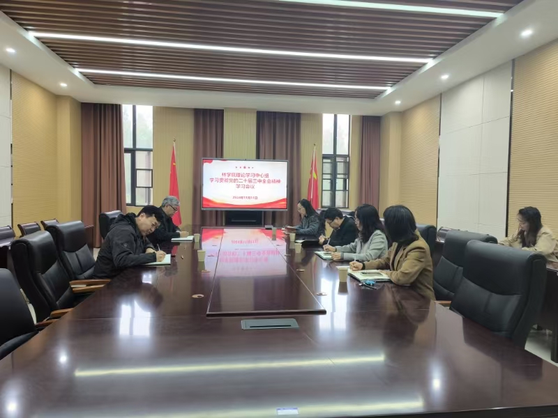 11月11日,院党委理论学习中心组在力行楼南244会议室开展党的二十届三中全会精神集中学习。会议由院党委书记化青报主持,院党委理论学习中心组成员参加会议。