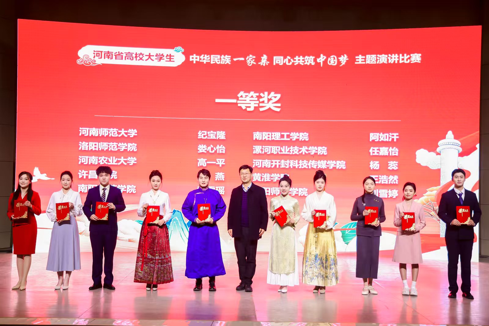 12月4日,由中共河南省委教育工委、省教育厅主办,河南师范大学承办的全省高校大学生“中华民族一家亲,同心共筑中国梦”主题演讲比赛决赛圆满结束。我院生态学24级学子高一平荣获一等奖。