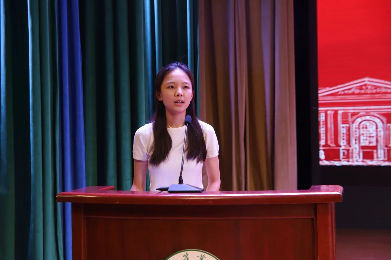 典礼第四项,老生代表环境工程21-1班陆佳瑞发言。她首先代表林学院全体老生向24级新生表示热烈的欢迎和真诚的祝贺。她回顾了自己从初入大学时的紧张与憧憬,到如今成长为学生干部和光荣的中国共产党员的历程,鼓励新生们相信自己的选择。她强调,林学院拥有优秀的师资、良好的学习环境和完善的教学计划,只要努力攀登,这里必将成为大家梦想起航的摇篮。最后,她对新生们提出了四点建议:一要勇于踏出舒适圈,拓宽信息来源;二要摆脱懒惰,坚持学习;三要注重实践能力和思维方式的培养;四要锻炼身体和坚持热爱,努力成为一个全面发展的人。