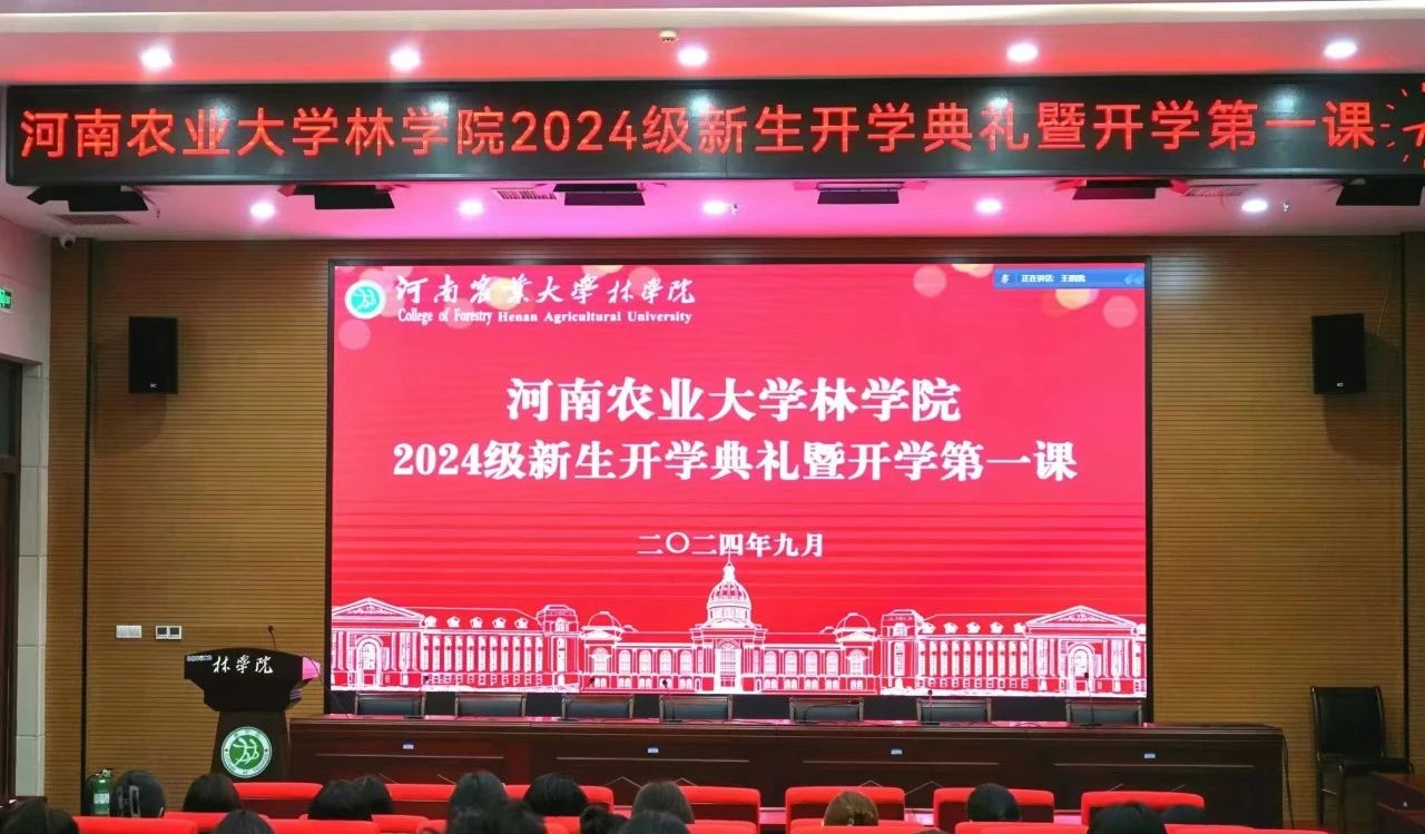 9月13日下午,我院在文化路校区大礼堂隆重举行河南农业大学林学院2024级新生开学典礼暨开学第一课。院党委书记化青报,院党委副书记王娟,副院长彭万喜、张学芳、李喜梅,研究生导师代表,24级本科生班主任和助理班主任,辅导员老师及全体2024级新生参加典礼。典礼由王娟主持。