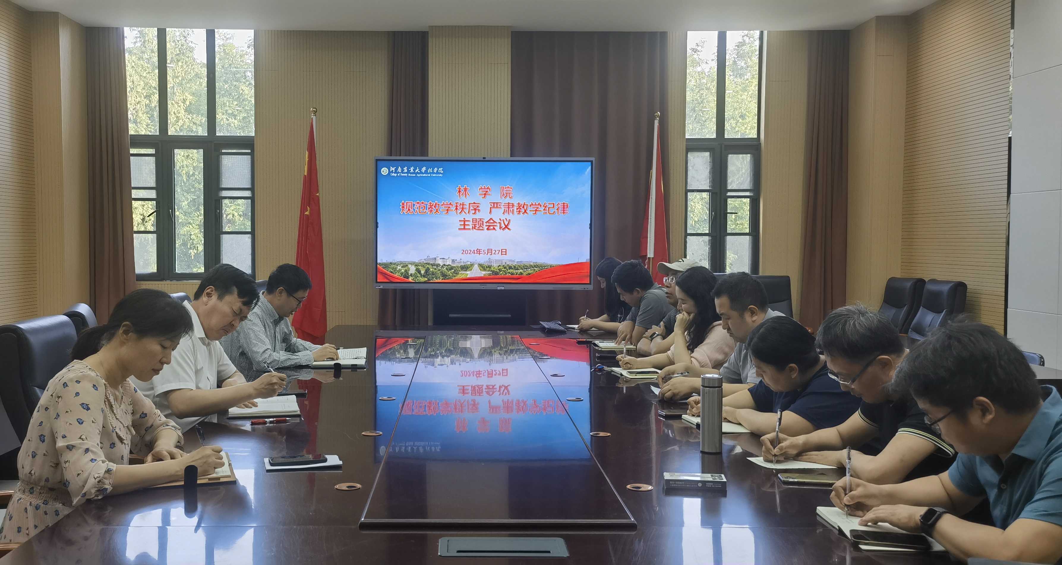为进一步规范教学秩序,严肃考风考纪,树立良好学风,维护考试的公平公正,共创良好的考试环境,5月27日,我院召开“规范教学秩序、严肃教学纪律”主题工作会议。院党委书记化青报、副院长彭万喜、副院长李喜梅出席,各系主任、教学副主任、教学秘书等负责教学人员参加会议。会议由彭万喜主持。