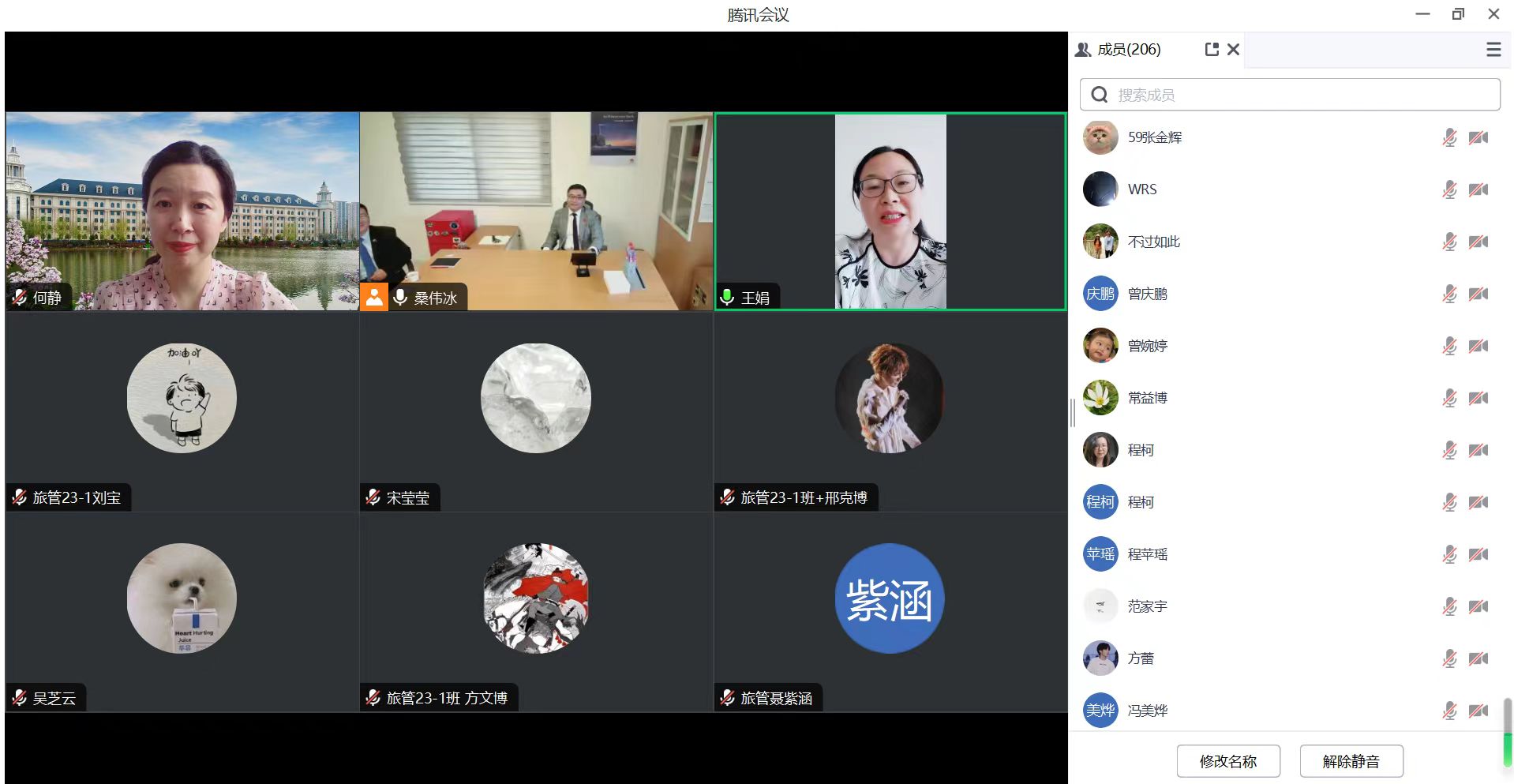 为帮助我院学子学习职业规划的基本方法,培养学生自身职业生涯规划素质和能力,6月8日下午,我院于线上开展“国际视野,家国情怀与个人发展”为主题的大学生职业生涯规划讲座,此次讲座特邀中国经济外交官、中国驻利比里亚使馆经济商务参赞王嘉欣主讲,我院党委副书记王娟、旅管系全体师生及2008级校友桑伟冰参加,讲座由我院旅管系主任何静主持。