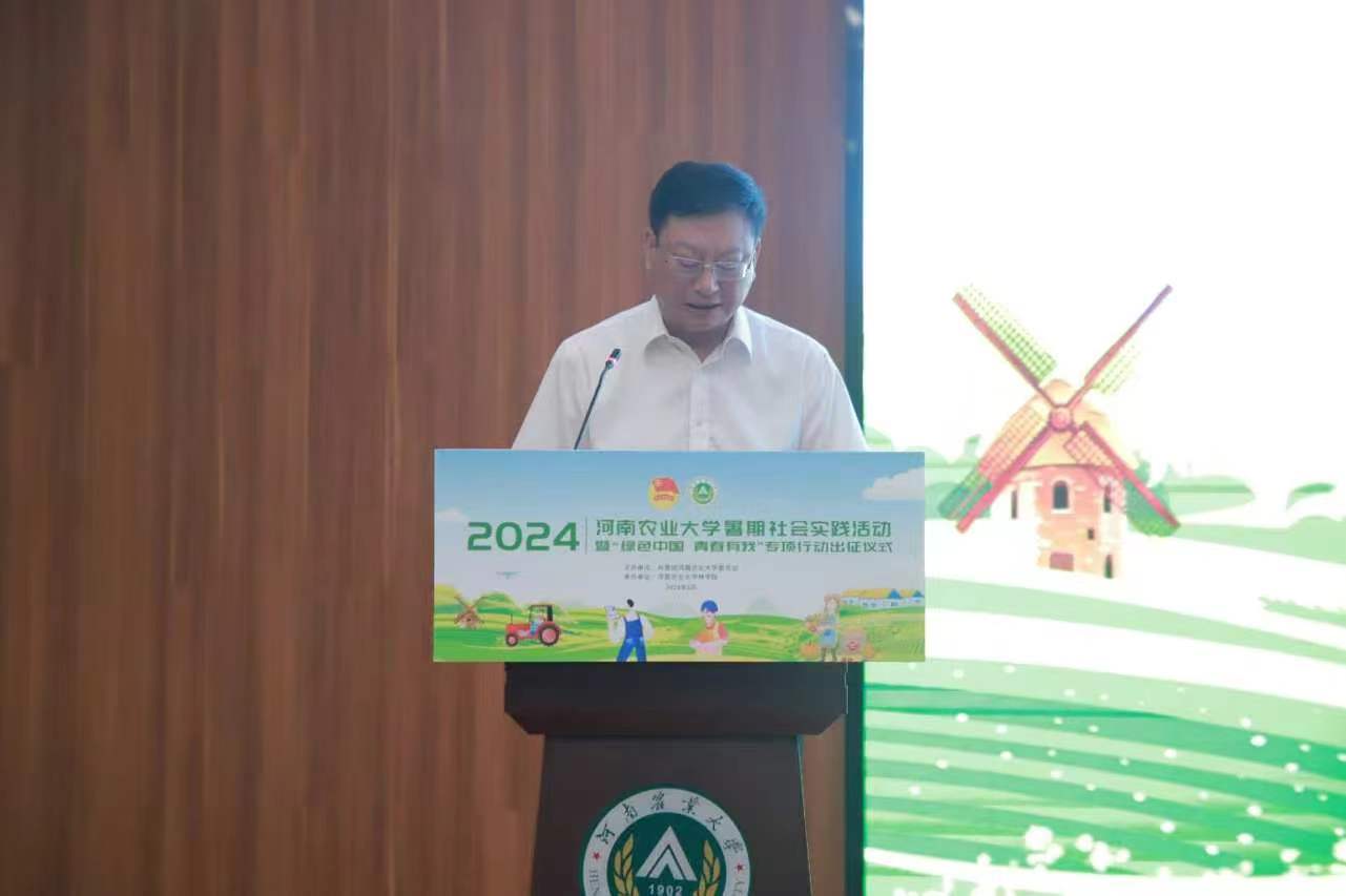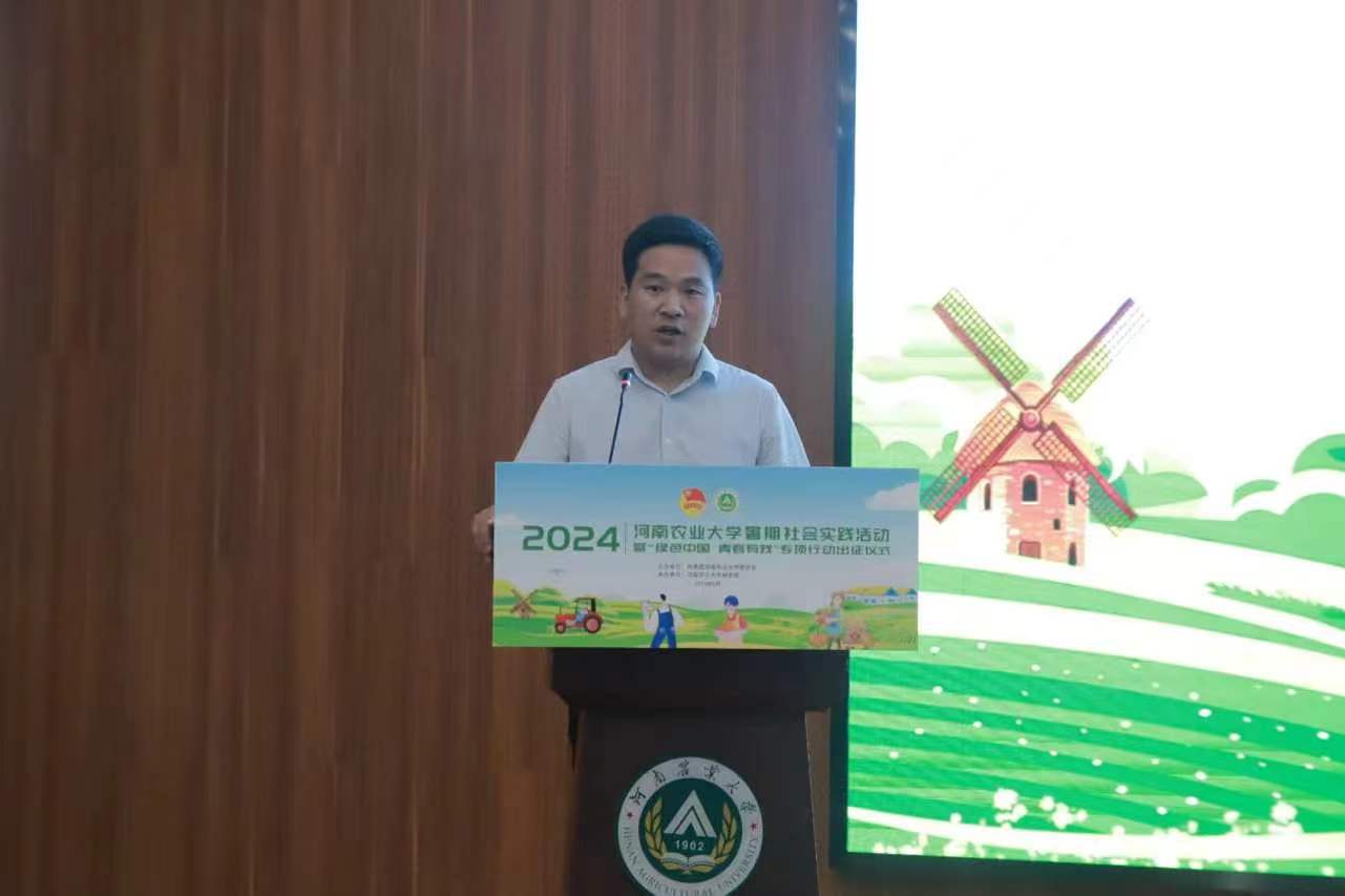 随后,我院教授郭二辉、2023级旅游管理专业学生刘梓铭分别代表指导教师和实践学生发言。他们表示,近年来,学校积极响应团中央“三下乡”社会实践的号召,高度重视暑假社会实践工作。而作为即将参与社会实践的大学生,要做到三点要求。一是要甘心奉献,要做勇于吃苦的“实践人”。二是要学以致用,要做知行合一的“实践人”。三是要牢记使命,要做讲好“故事”的“实践人”。同时他们也表示将在此次社会实践中践行弘农爱国的农大精神,用扎实的专业知识描绘乡村振兴“新图景”,交出实干“好答卷”,用自身所学回报祖国和人民,为建设社会主义现代化强国贡献力量。