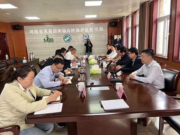 揭牌仪式后,双方参会人员就生态旅游发展、森林康养技术和管理模式、景区引流和管理、人才培养、研究项目合作等方面进行了座谈交流,并参观了宝天曼森林康养实践教学基地、生态站和葛条爬保护站,深入了解宝天曼森林康养产业发展与运营现状、康养服务模式等情况。