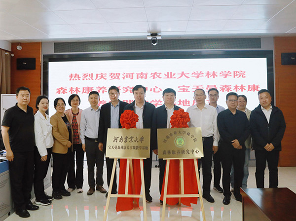 4月23日上午,河南农业大学宝天曼森林康养实践教学基地和森林康养研究中心揭牌仪式在内乡宝天曼国家级自然保护区管理局举行。宝天曼国家级自然保护区管理局党组书记陈良甫、副书记李英杰、樊国华,副局长沈单欣、张国雄,校友联络处副主任闫东、院党委书记化青报、副院长彭万喜、张学芳、旅游管理系主任何静、教授朱玉芳、森林康养实践教学基地与森林康养研究中心主任李永生等相关人员共同出席仪式。