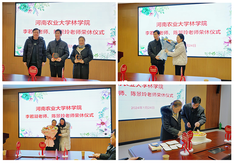 不忘春风桃李,致敬岁月芳华。1月24日,我院旅管系李若凝老师、生态系陈景玲老师荣休仪式在力行楼2-南-231会议室举行,院领导班子、各系教师及学生代表参加。仪式由院党委副书记王娟主持。