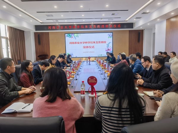 朱玉芳发表了荣休感言。她表示,在林学院的日子一直本着教书育人的信念工作,是她人生中最宝贵的经历之一,非常感谢学校给予的机会和同事们的支持。尽管离开工作岗位,但仍会关注支持学院的发展,并希望年轻教师们能够继往开来,不忘初心,为祖国教育事业出一份力,发一份光。