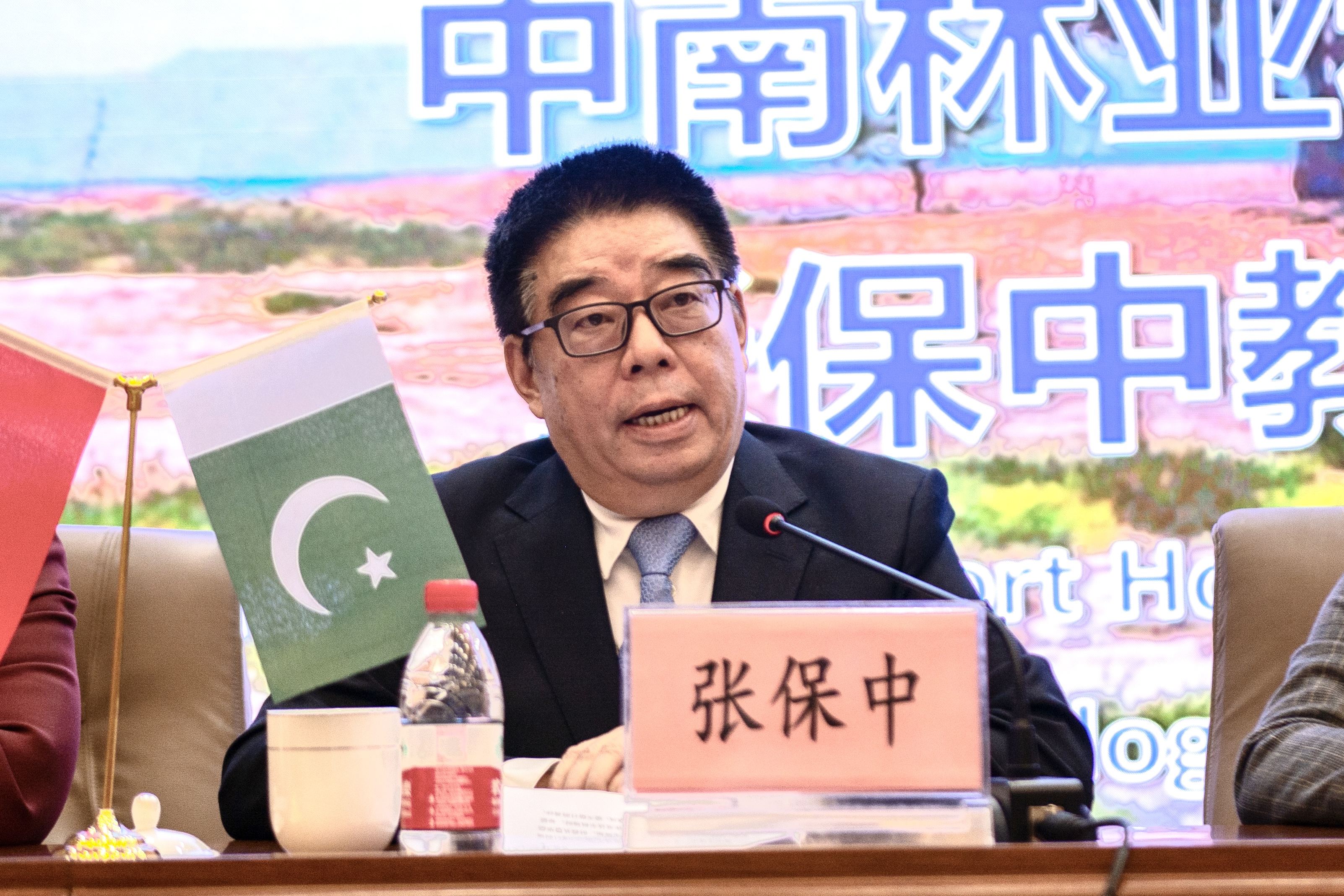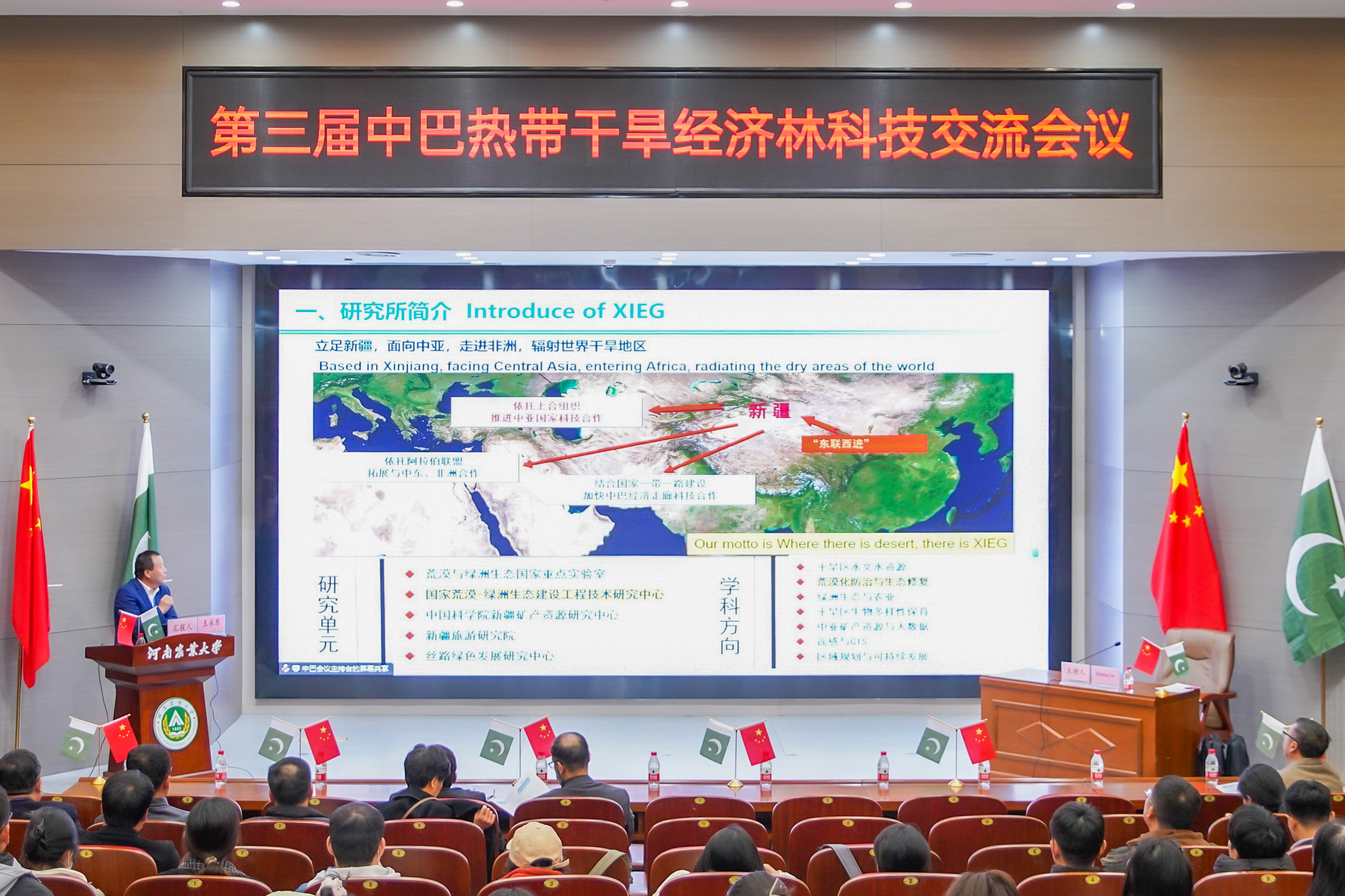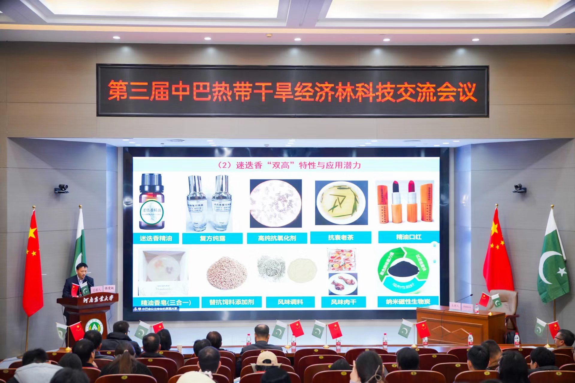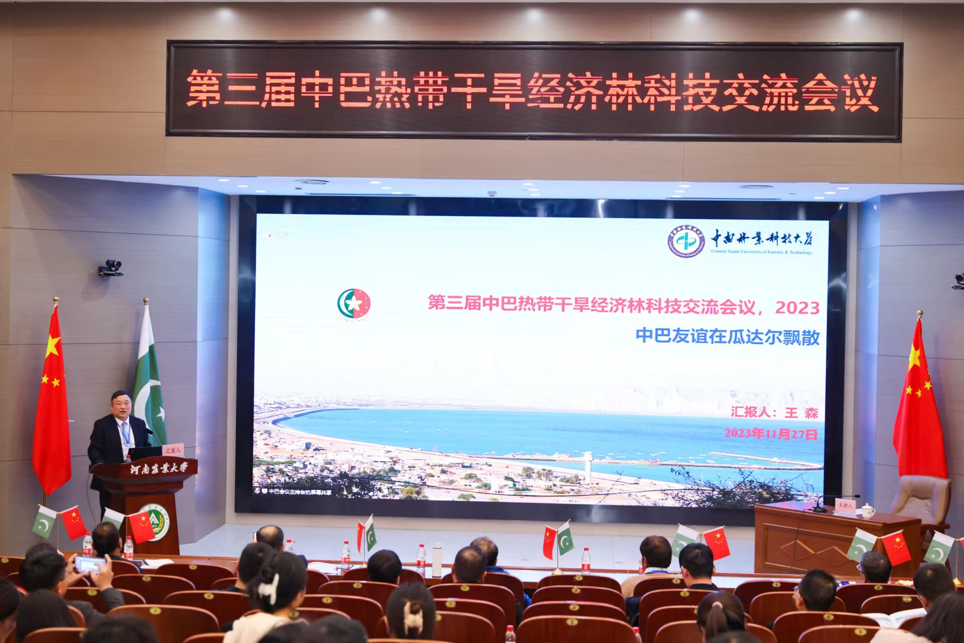 2023年11月27日上午,由中国林学会、中南林业科技大学主办,河南农业大学、河南省林学会、中国林学会经济林分会、中国海外港口控股有限公司、育林控股有限公司、卡拉奇大学、费萨拉巴德农业大学、印度河大学、瓜达尔大学、“一带一路”干旱经济林国家创新联盟、湖南省“一带一路”热带干旱经济林国际联合研究中心承办的第三届中巴热带干旱经济林科技交流会议,以线上线下结合的方式在我校和巴基斯坦瓜达尔自由区同时开幕。本次会议以“木本药材与活性物质”为主题。来自我校和中国林学会、中南林业科技大学、中国林科院经济林中心和亚林中心、巴基斯坦印度河大学、卡拉奇大学、瓜达尔大学、费萨拉巴德农业大学等单位的领导嘉宾、专家学者和企业家等200余人参加会议。校长介晓磊出席会议并致辞。林学院院长范国强主持会议。