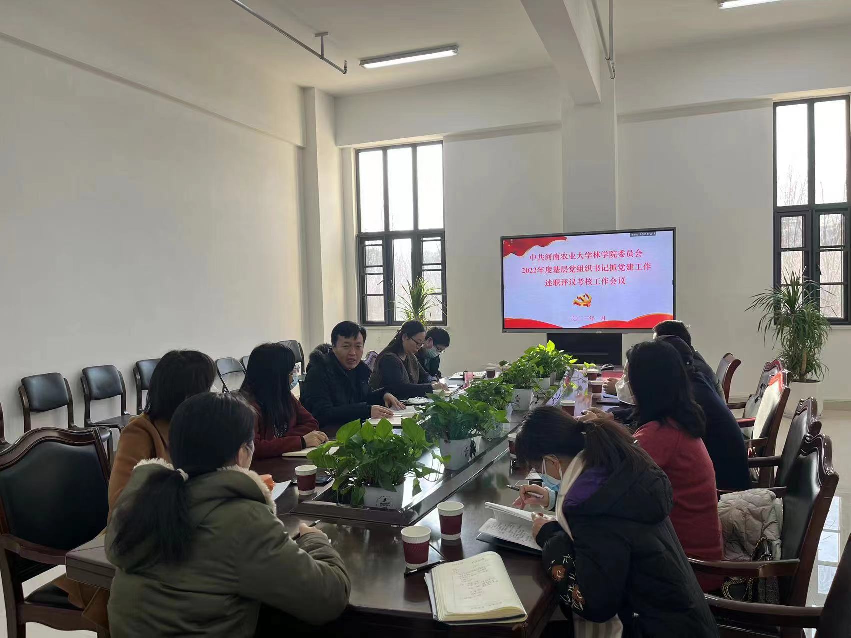 1月9日,我院在龙子湖校区力行楼会议室召开2022年度基层党支部书记抓党建工作述职评议考核会议。院党委书记化青报、副书记王娟、副院长彭万喜、副院长张学芳、副院长李喜梅及各教工党支部委员参加会议。会议由王娟主持。