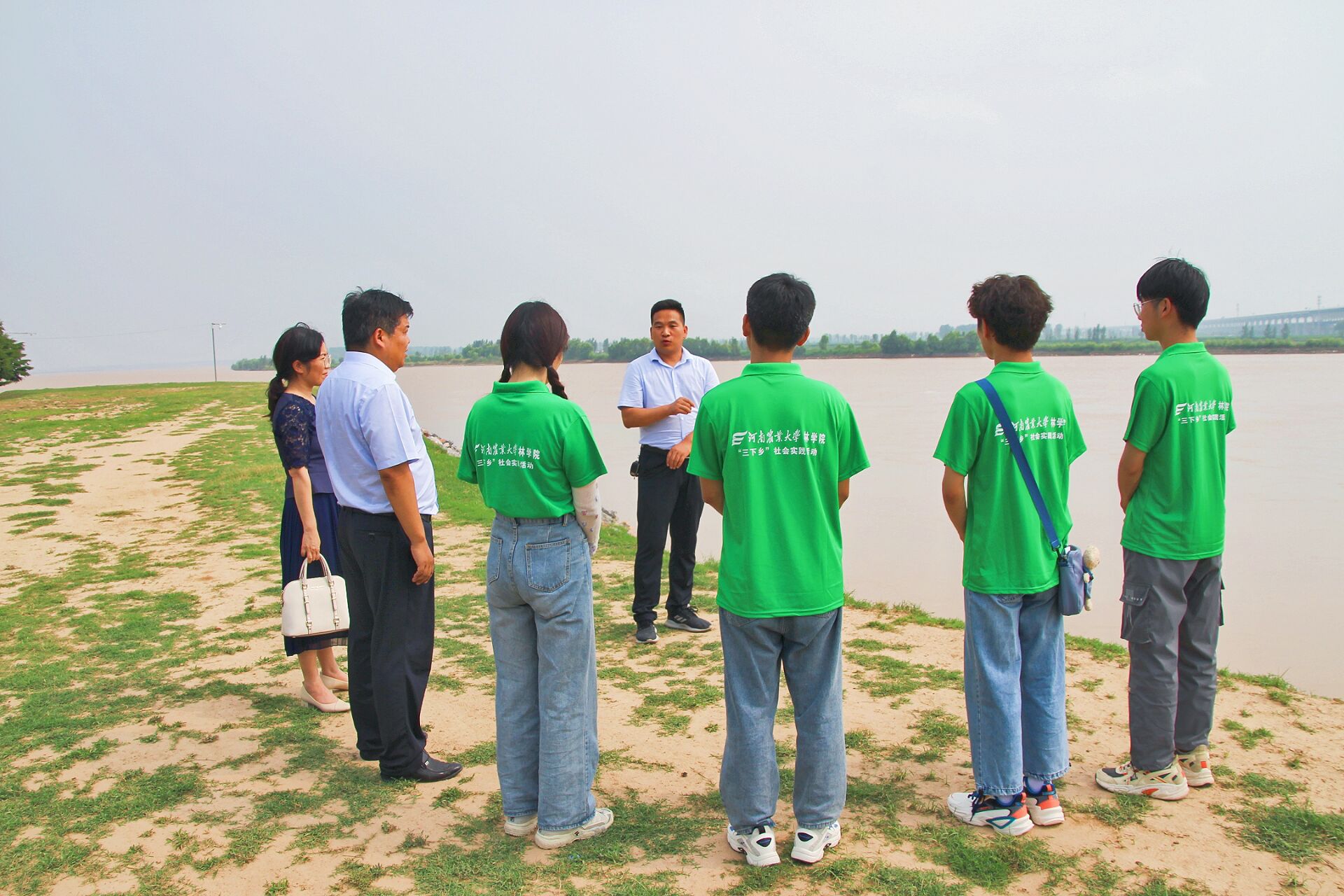活动最后,团队成员来到黄河滩区进行黄河生态调研,郭二辉站在生态学专业的角度,讲解了黄河功能分区的生态情况。他表示,黄河是中华民族的发源地,黄河生态保护及环境治理意义重大,功在当下,利在千秋。
