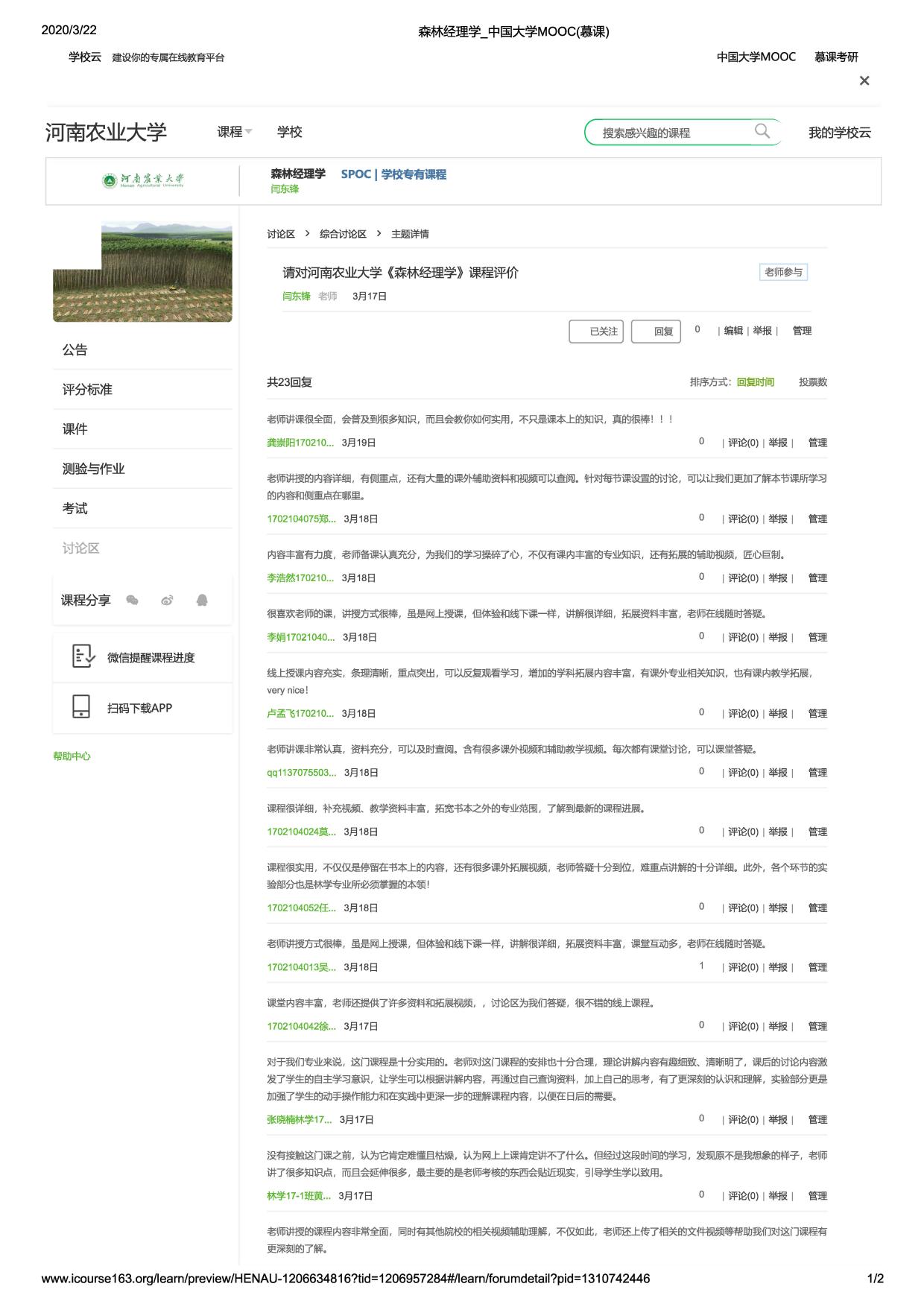 《森林经理学》这门课程是河南省首批一流本科课程,校级专业核心课程和校级在线开放课程。作为课程负责人,闫东锋老师在疫情期间依据线上教学的特点,不断调整教学内容、改进教学方法、完善教学环节,做好线上教学的三个创新,取得了良好的教学效果,深受学生好评。
