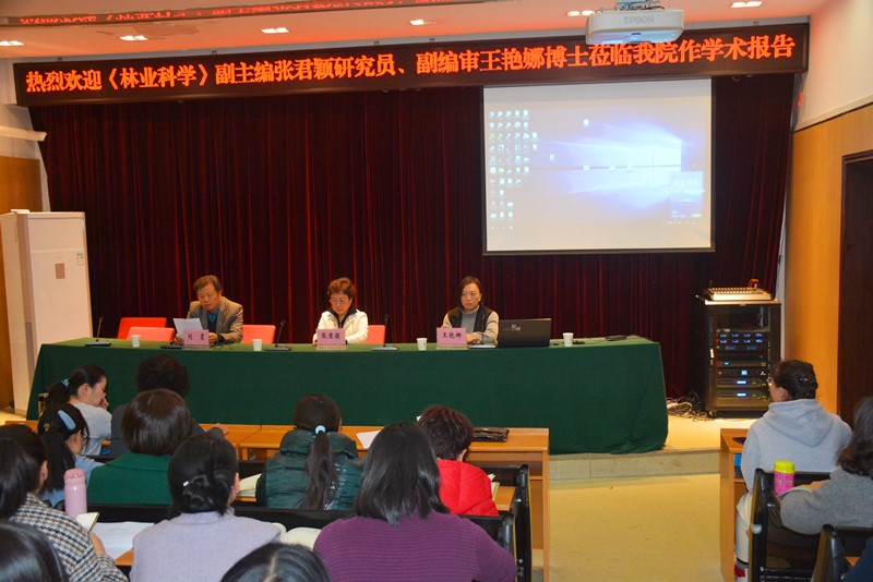 11月19日下午,应我院邀请,《林业科学》副主编张君颖研究员、副编审王艳娜博士在2号楼四楼学术报告厅为我院师生作了题为“《林业科学》对稿件的基本要求”的精彩报告。本次报告会由副院长刘震主持,相关专业师生参加了报告会。