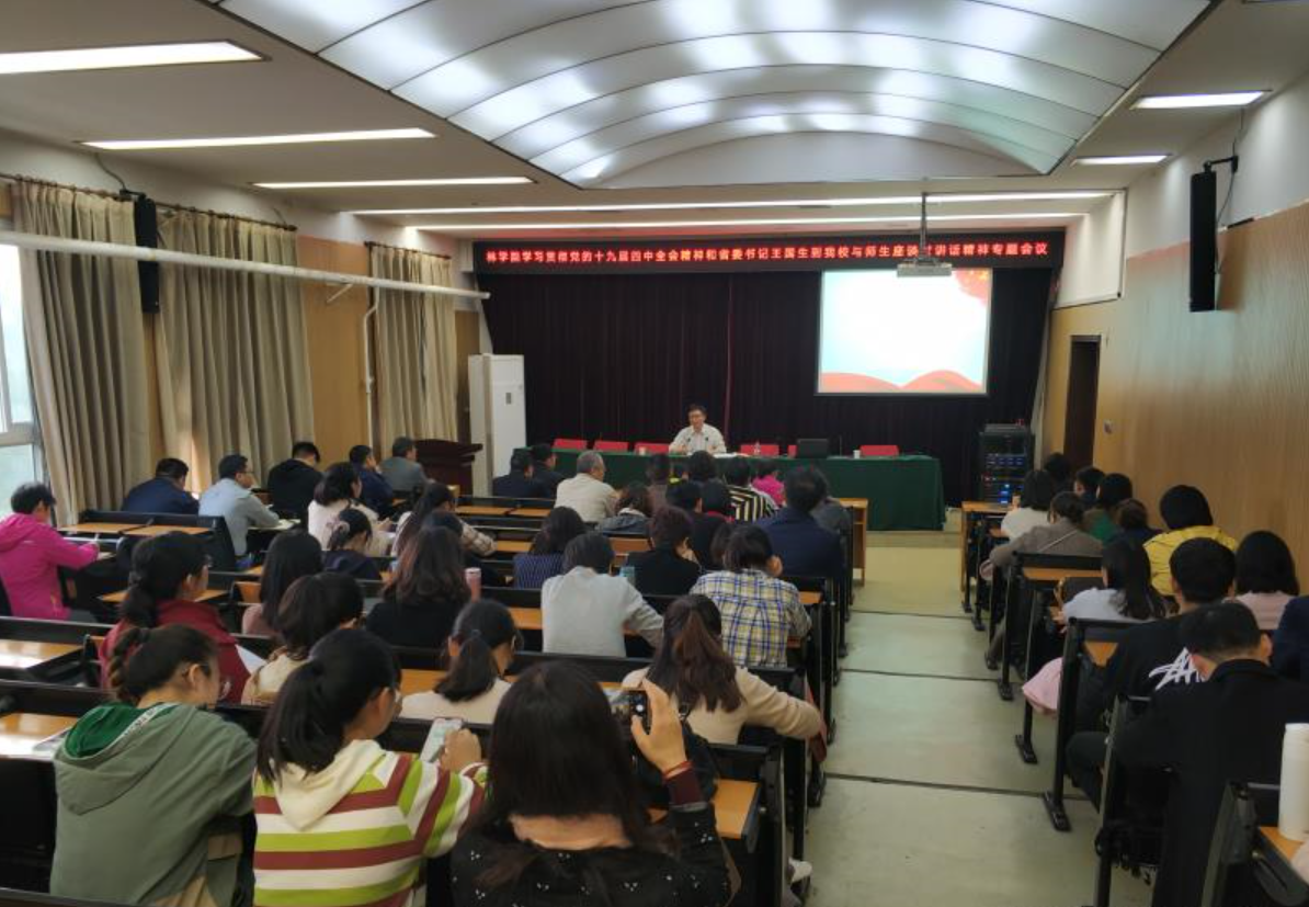11月5日,11月13日我院先后召开专题会议,组织全体教工党员大会和党支部书记培训班,集中学习党的十九届四中全会精神和省委书记王国生到我校与师生座谈时讲话精神,院党委书记郑东方主持会议并进行宣讲和解读。11月12日,院党委副书记张华走进入党积极分子,结合党的性质和宗旨,作了深入的十九届四中全会精神宣讲。11月13日,我院政工干部深入学生宿舍开展党的十九届四中全会精神宣讲,要求同学们深刻领会十九届四中全会和王国生书记来我校讲话精神内涵,做新时代青年建设者。11月15日-20日,我院党支部书记、班主任老师进支部、班级、课堂开展主题宣讲活动,广大学子在宣讲会中积极表达自己的观点看法,深刻领会精神实质和科学内涵。