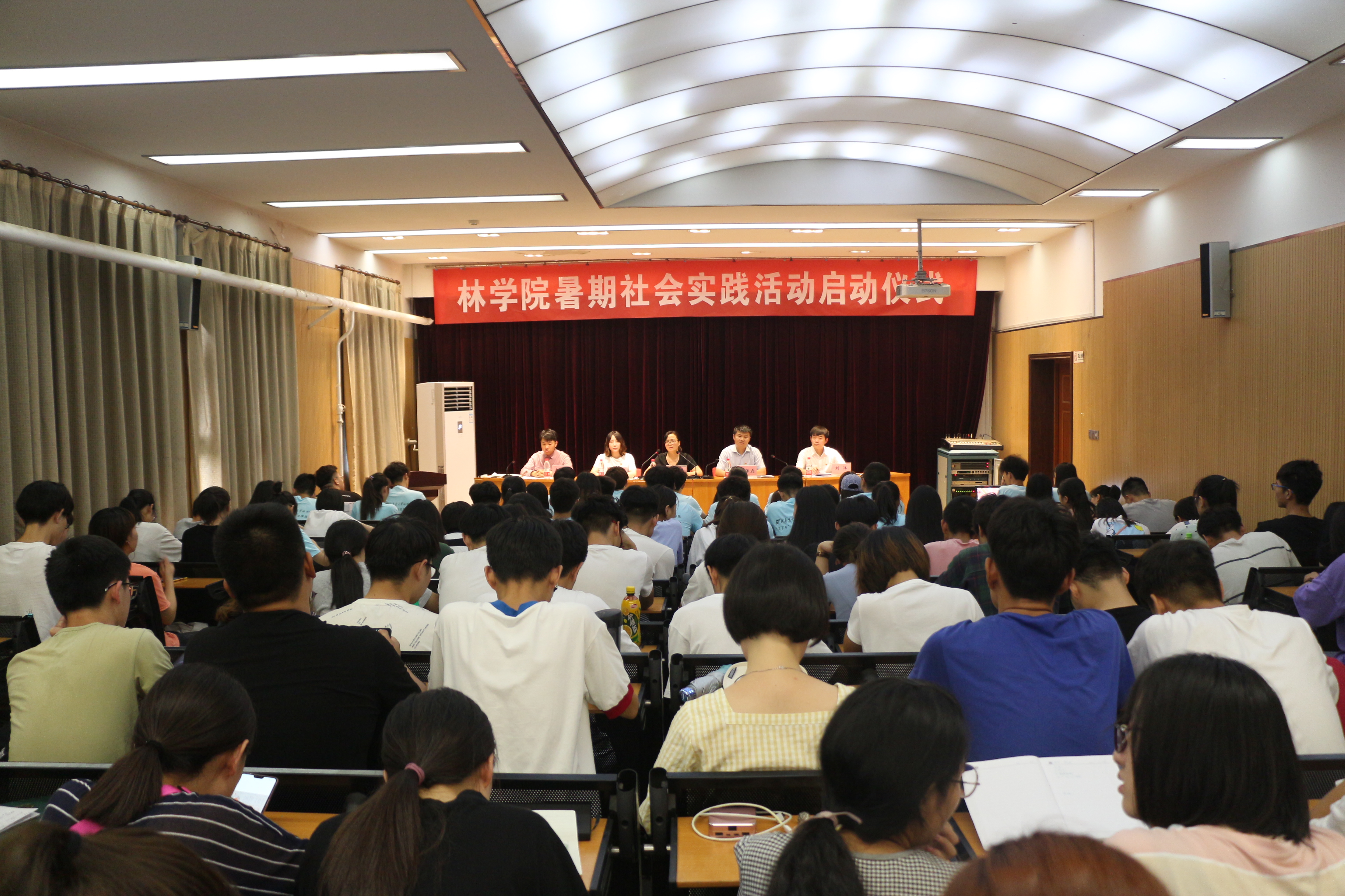 张保磊宣读《林学院2019年暑期社会实践重点团队名单》,随后,与会老师为重点团队代表进行授旗。张育维作为社会实践团队项目负责人发言,他表示一定会珍惜机遇,虚心学习,大胆实践,以饱满的热情投入到暑期社会实践当中,为学院再创佳绩。社会实践团队代表刘艺慧宣读林学院暑期社会实践安全稳定承诺书,号召全体社会实践团队成员严格遵守国家法律法规和校规校纪,确保学生人身财产安全,杜绝事故发生。
