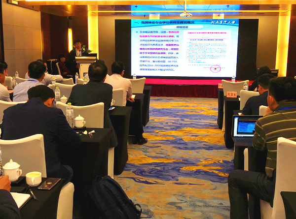我院副教授学闫东锋在会上就林业专业学位研究生教育作了交流发言。他从我国林业专业学位研究生教育的发展概况及其存在的问题、国外林业专业学位研究生教育典型做法及其借鉴等方面作了汇报,并介绍了河南农业大学林业专业学位研究生教育的改革举措。