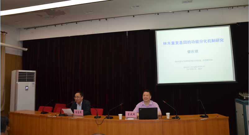 5月14日上午,应我校副校长尚富德邀请,国家杰青、国家万人计划领军人才、林木遗传育种国家重点实验室主任曾庆银研究员在二号楼四楼学术报告厅为我院师生作了题为“林木重复基因的功能分化机制研究”的精彩报告,相关专业的师生参加了此次报告会,报告会由副校长尚富德主持。