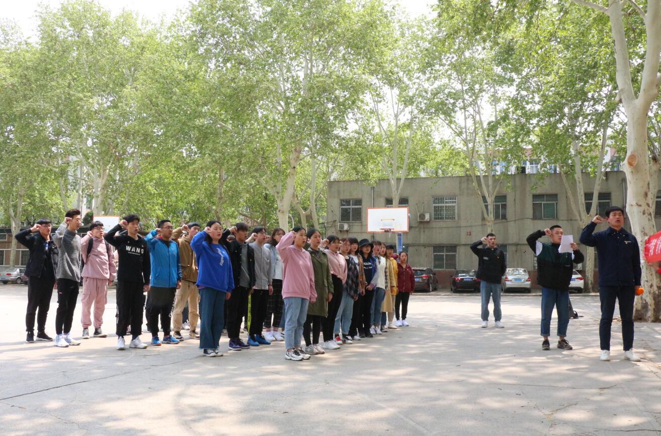 为了庆祝中华人民共和国成立70周年,纪念五四运动100周年,深入学习贯彻习近平总书记新时代中国特色社会主义思想,激励和引领广大青年弘扬爱国主义精神。4月12日,我院于文化路校区东篮球场举办2019学年青马班仪式教育活动。院团委老师刘洋及第二期青马班全体学员参加了此次活动。