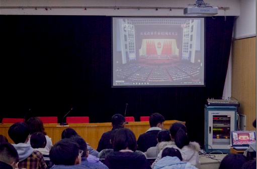 为全面回顾改革开放40年来波澜壮阔的历史,深切感悟我国社会主义现代化建设的伟大成就和历史经验,12月18日,我院师生分别于二号楼2楼会议室、4楼学术报告厅集中观看庆祝改革开放40周年大会,认真聆听习近平总书记重要讲话。