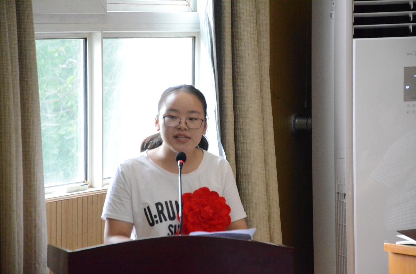 2016级园林1班高文君同学代表第十届“蒋建平奖学金”获得者发言,她首先代表所有“蒋建平奖学金”获得者向蒋老先生表达衷心的感谢和真挚的祝福,并祝愿他身体安康。她在发言中讲述了蒋建平教授将获得的“河南省科技功臣”奖金捐做奖学金的事迹,为蒋校长对青年人的无私关爱和殷切期待所动容。她表示会继续秉承蒋校长严谨求学的态度,将掌握的知识实践于社会发展和祖国建设中,用青春之我,奋斗之我,报效祖国,回报母校,回报蒋校长的关爱。