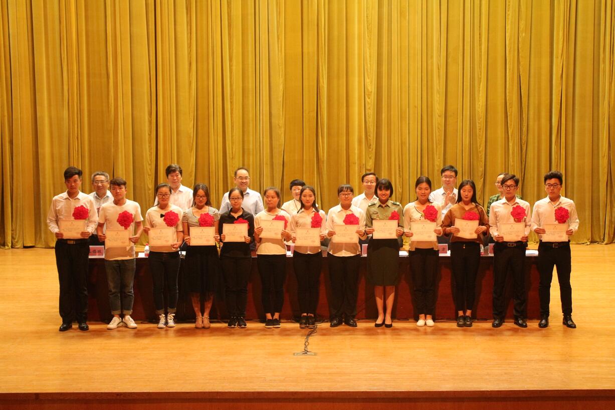 为总结2016-2017学年学生工作,巩固“三大”教育成果,树立先进典型,激励青年学子成长成才,5月16日晚七点,我院在校大礼堂隆重举行了2016-2017学年学生工作表彰大会暨“乐创行动”引领计划启动仪式。校研究生工作部部长李为、校团委书记马菲、校学生处副处长许世明、院党委书记郑东方、院长杨喜田、院党委副书记张华、副院长孔德政出席了本次会议。大会由院党委副书记张华主持。 表彰大会在庄严的国歌声中拉开了帷幕。 副院长孔德政宣读了《林学院关于表彰2016-2017学年先进集体和先进个人的决定》、《林学院关于表彰2017年度“十佳大学生”暨“大志之星”、“大爱之星”、“大雅之星”的决定》、《林学院关于表彰2016-2017学年“优秀研究生干部”和“优秀研究生”的决定》、《林学院关于表彰2016-2017学年单项奖学金获得者的决定》、《林学院关于表彰在第四十九届校运会表现突出的先进集体和先进个人的决定》、《林学院关于表彰2016-2017学年文艺工作先进个人和文艺活动先进个人的决定》、《林学院关于表彰2016-2017学年明星社团和社团之星的决定》。 伴着欢乐的颁奖音乐,与会领导为受到表彰的先进集体和先进个人代表颁发了奖状和荣誉证书。2015级环境工程1班的李晓庆、2015级建筑学1班的段笠鑫分别代表先进集体和先进个人发言。 随后,院团委书记张保磊宣读了《林学院关于开展“乐创行动”大学生创新创业引领计划实施方案》,对我院大学生“双创”工作作了具体的安排部署。 最后,院长杨喜田发表重要讲话。他从思想政治教育、学院品牌特色创建两个方面出发,回顾了我院一年来的学生工作成果,并向同学们提出三点希望:一是希望同学们树立远大理想,牢固树立和践行社会主义核心价值观。二是希望同学们勤于学习,脚踏实地,努力实现自身的全面发展。三是希望同学们勇于创新,强化创新创业观念、增强创新创业勇气。 大会在热烈的掌声中圆满落幕。