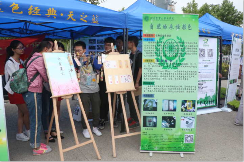 活动中,我院植物爱好者保护协会和Flower Diary花朵日记压花创业团队精心布置展览作品,举办了猜树谜有奖回答、压花作品展等活动,创业团队学生将落叶、落花经过压花工艺加工,制作成精美的书签、相框、手机壳等工艺品,唤起人们的环保意识,引导市民亲近自然、热爱自然,吸引了众多市民驻足观赏。随后,同学们还积极参与了环湖骑行、沿CBD会展中心环跑等活动,充分展现了“提倡绿色低碳出行,紧跟绿色环保节奏”的活动精神。