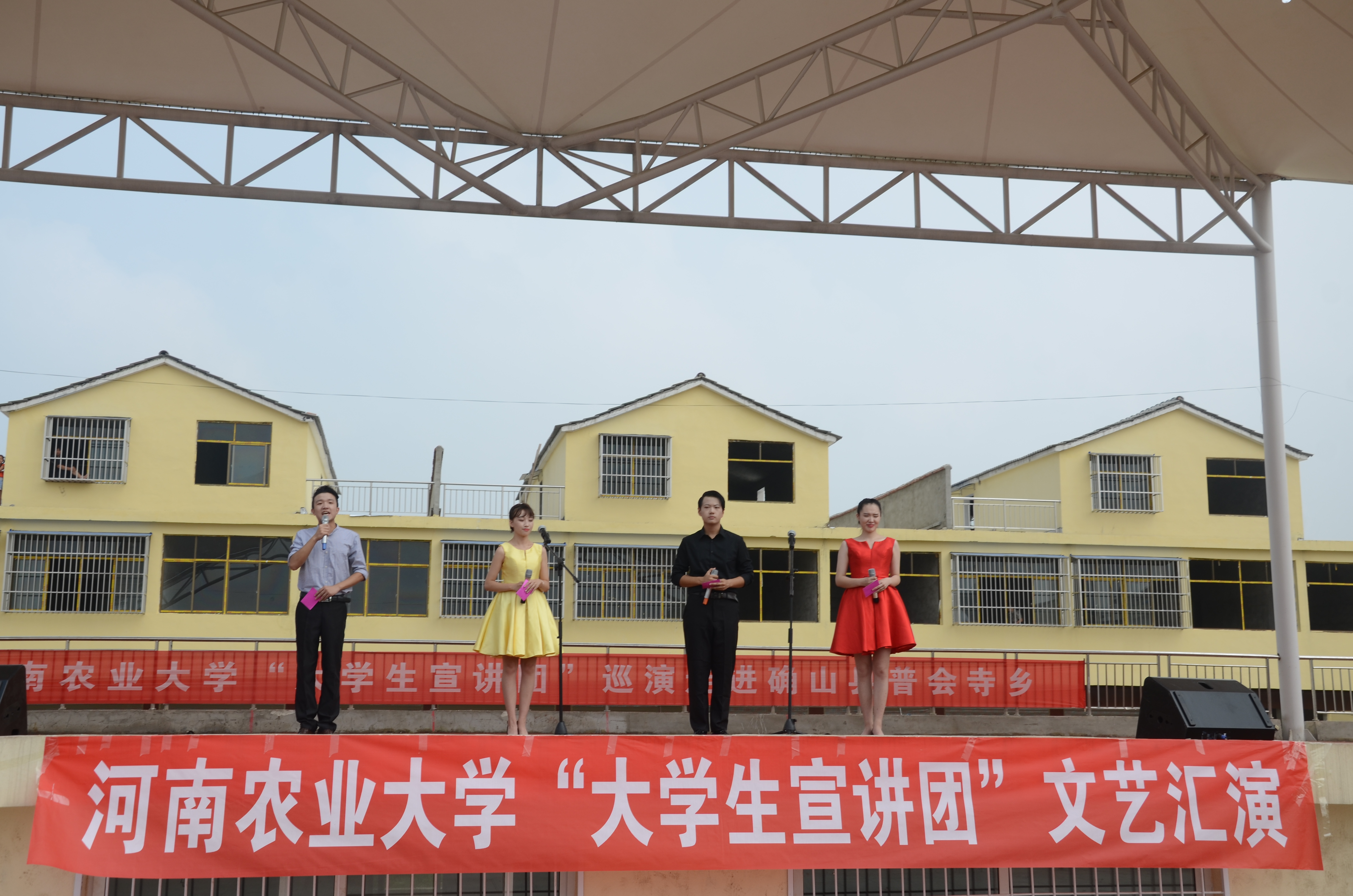 7月11日,我院2016年“大学生宣讲团”基层巡演在驻马店市精彩上演。本次巡演先后深入走进驻马店市确山县普会寺乡、驻马店市驿城区。校宣传部部长郭战伟、校团委书记马菲及地方相关领导、媒体、数百名群众一同观看了演出。