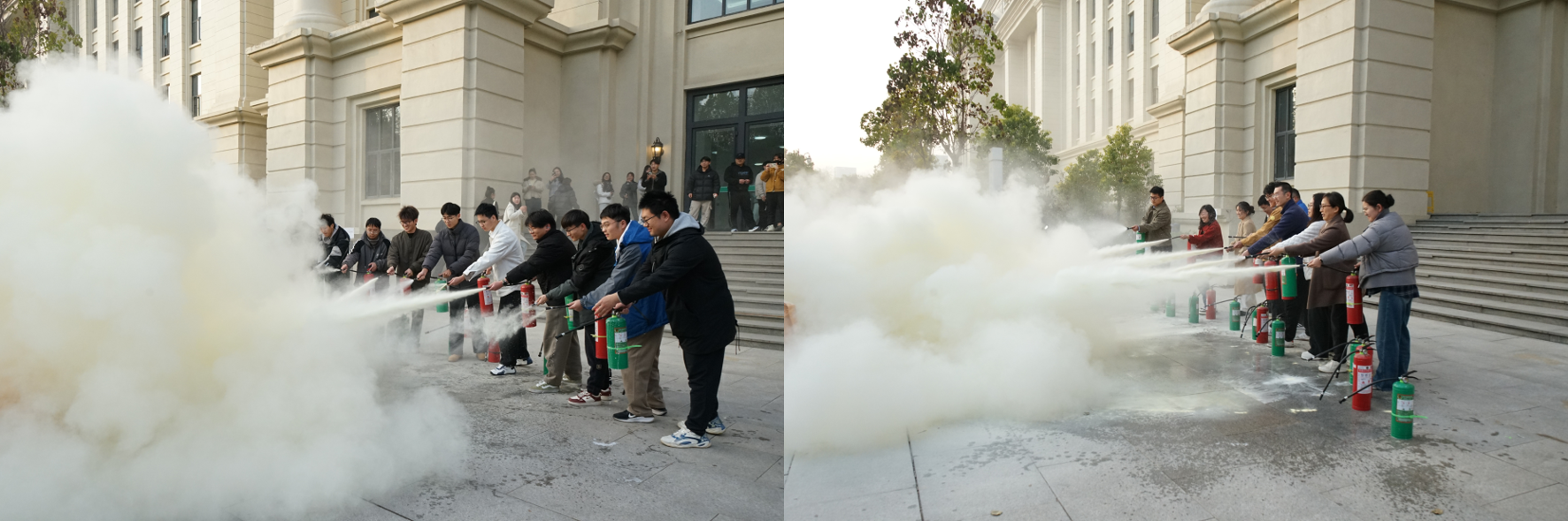 吴昊森做《全民消防,生命至上—安全用火用电》消防安全知识专题讲座。他用直观的火灾事故案例进行警示教育,详细讲解了火灾预防、火场逃生、灭火器材使用等基本知识。在消防演练实操环节,全体师生在教员专业指导下,亲身体验了灭火器使用与火场逃生。我院师生严格运用所学逃生知识,迅速从模拟火场中有序撤离至安全区域,整个过程紧张而高效。