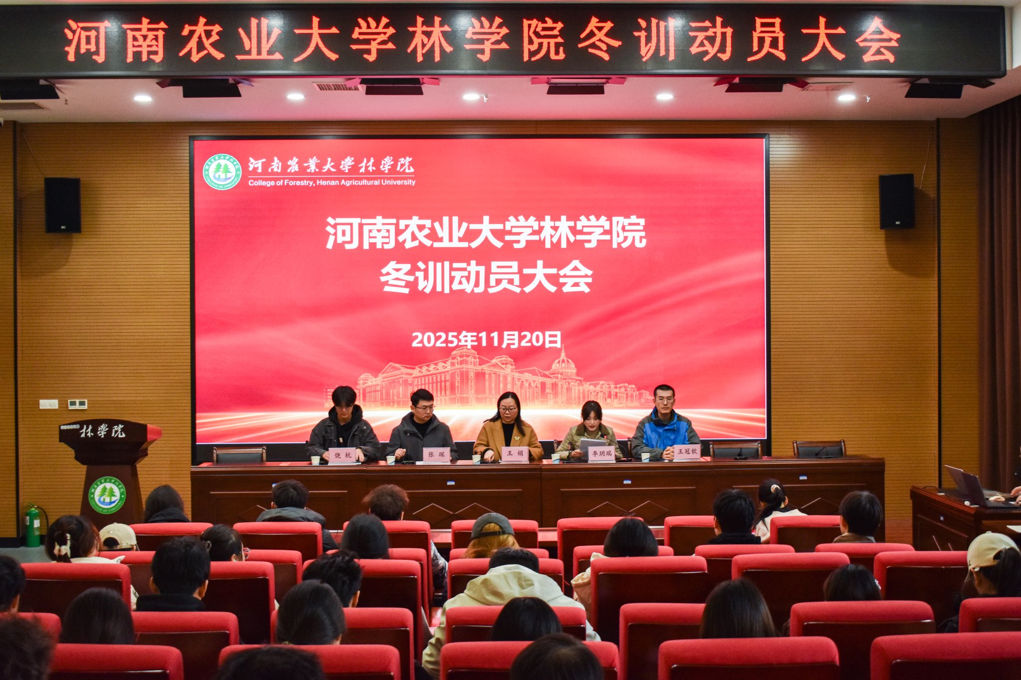 11月20日,我院于龙子湖校区力行楼南428报告厅召开2025年冬训动员大会。院党委副书记王娟、院团委老师李玥瑞、张琛、王冠钦、饶杭参与本次会议,院田径队成员、各班体育委员参加。会议由李玥瑞主持。