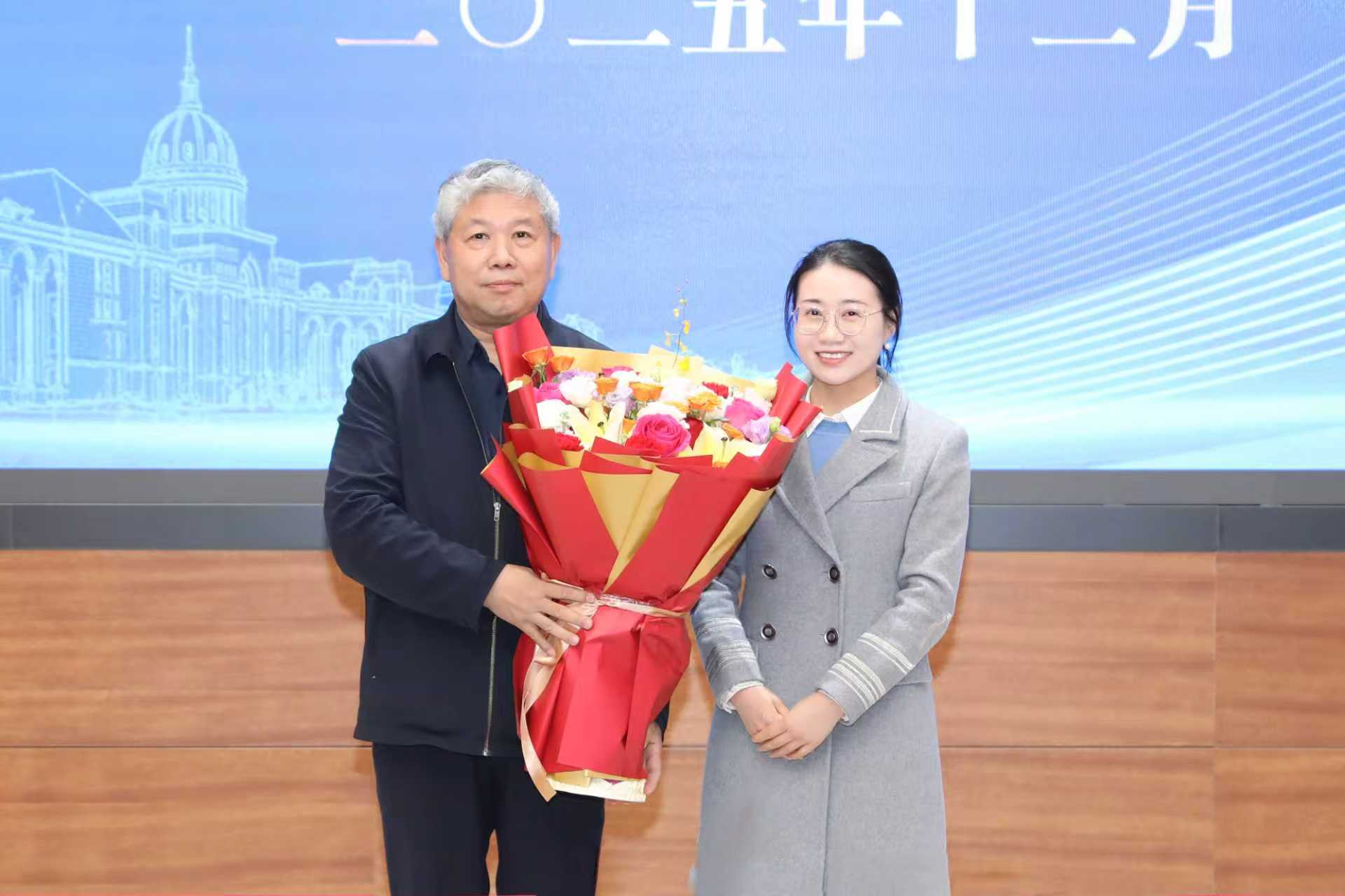 会议伊始,林学院青年教师陈圆圆代表与会人员向范国强院士献花祝贺。范国强对学校长期以来的关心培养表示感谢,并系统汇报了林学学科的发展基础、优势特色及下一步建设打算。
