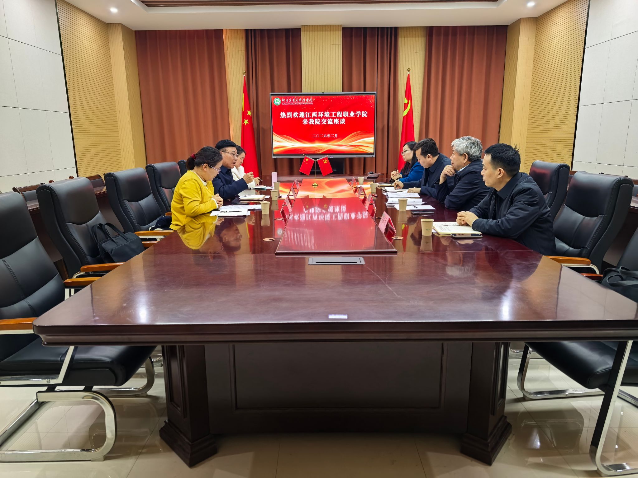 本网讯(通讯员 郭俨辉)2月11日,江西环境工程职业学院党委副书记、校长廖忠明一行来我院开展交流座谈。座谈会在力行楼南-244会议室举行。我院党委书记化青报,中国工程院院士、院长范国强,党委副书记王娟,副院长赵振利出席座谈会。会议由化青报主持。
