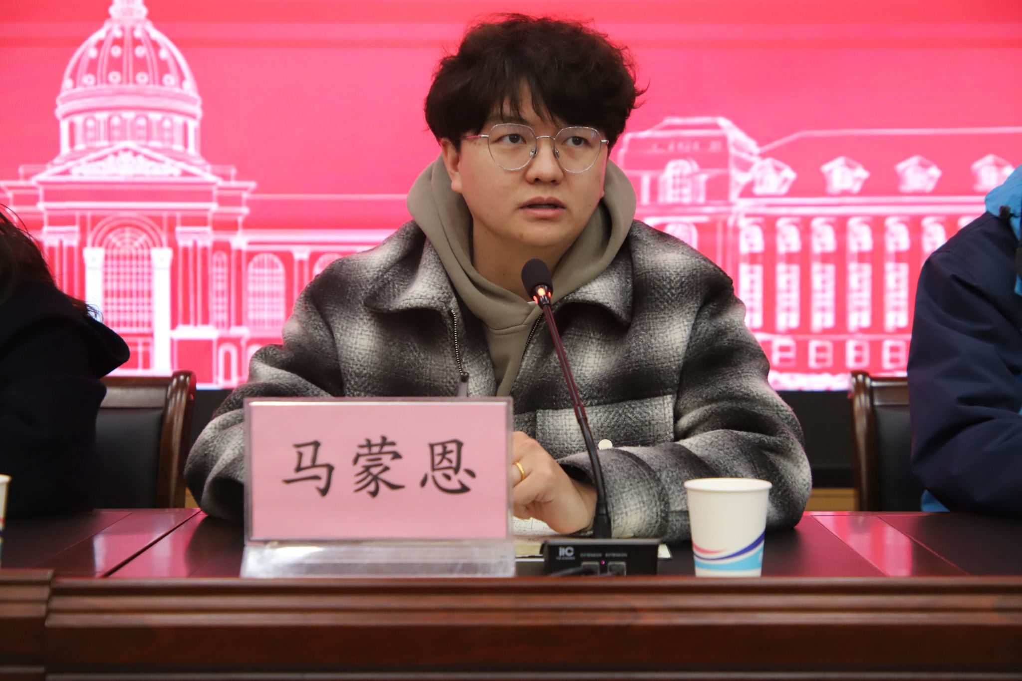 随后,张琛聚焦学生安全稳定工作,从意识形态、网络安全、财产安全等维度明确排查重点,严禁私自外宿、参与网贷传销等行为。最后,马蒙恩部署征兵动员、常态化心理健康排查、宗教问题摸排工作,要求学生干部重视落实,如实填报,将排查工作融入日常、落到实处,切实筑牢学院安全稳定防线。
