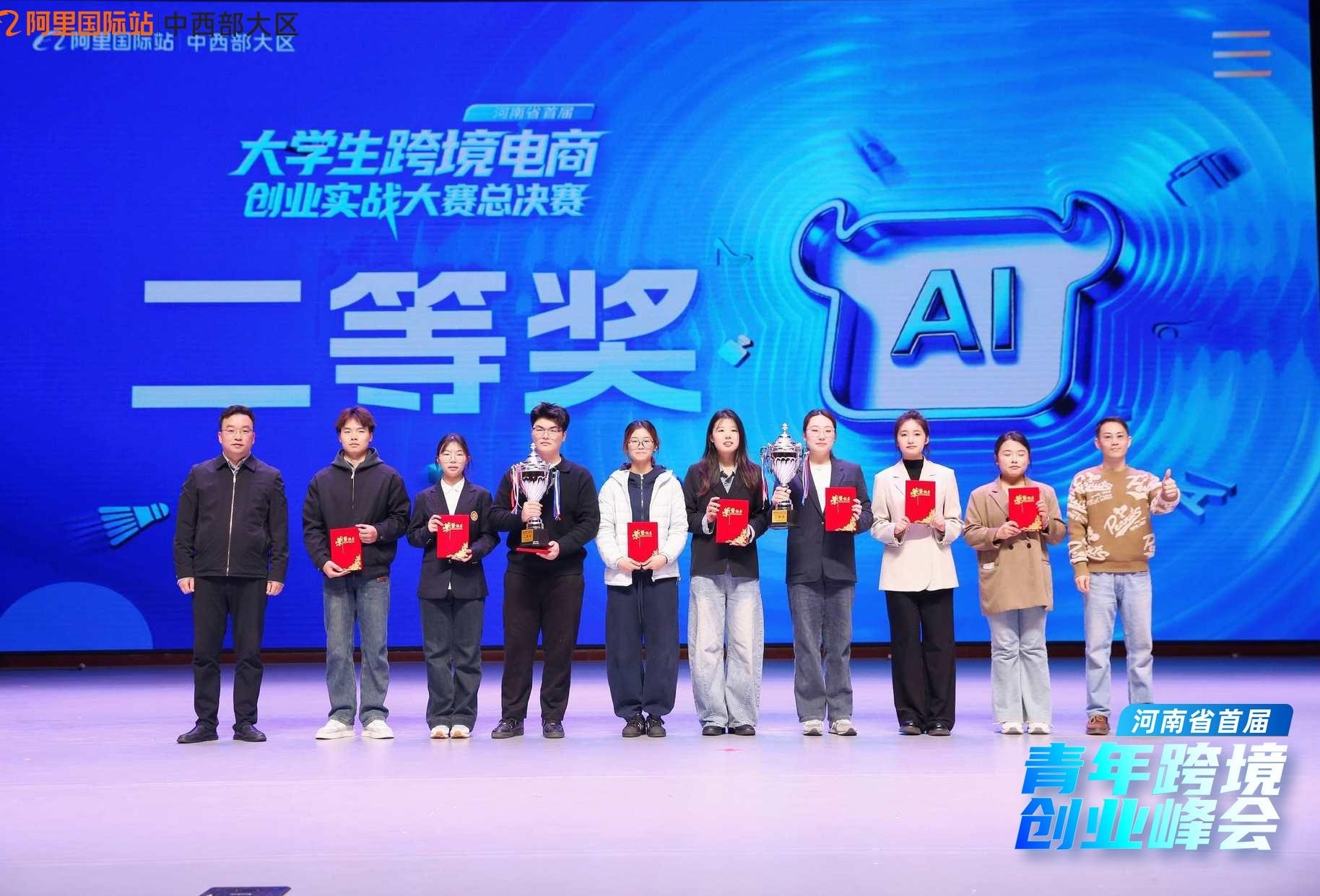 本次大赛是由河南省教育人才学会与阿里巴巴国际站主办的大学生跨境电商专项赛事。本次大赛以“外贸新青年”为主题,聚焦跨境电商领域的实战能力与创新思维。大赛自启动以来,吸引了全省25所高校的268支队伍参赛,经过多轮激烈角逐,最终12个团队晋级全省总决赛。在总决赛现场,我院两支参赛团队沉着应对,分别从市场调研、运营方案、AI赋能跨境营销等多个维度,充分展示了项目的创新性、可行性与市场潜力,凭借清晰的逻辑、专业的答辩和饱满的精神状态,赢得了评委的高度认可,最终袁梦阳团队荣获二等奖、邢倩倩团队荣获优秀奖。