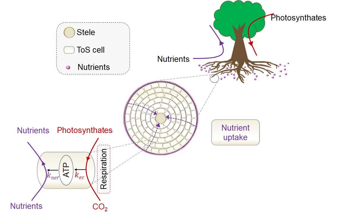 图5. 碳-养分双向交换发生在根皮层中的最优部位